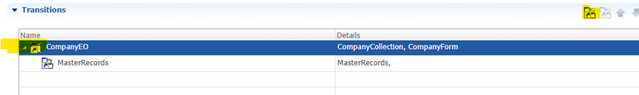 5. Select the new transitions and click on the arrow to list the dropdown and select row below the new transition (CompanyGoldenHistory in this case) .