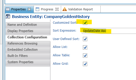 7. Tick Customized Sort and in the sort expression add UpdateDate Asc or UpdateDate Desc depending on how you want to sort the records